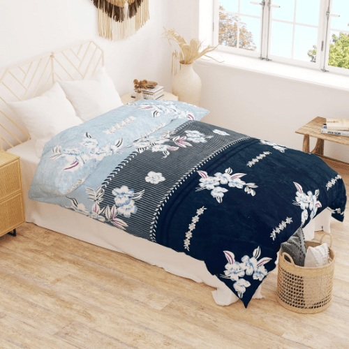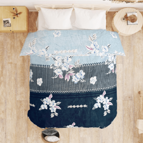 Winter Microfiber Flannel Reversible Double Bed Printed AC Comforter (Blue)