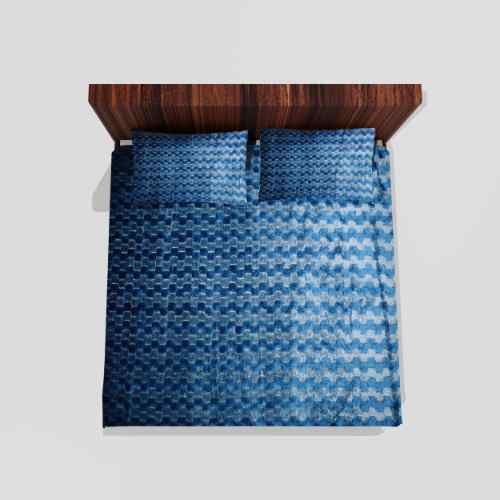 Winter Warm King Size Flat Double Bedsheet With 2 Pillow Cover (Blue)